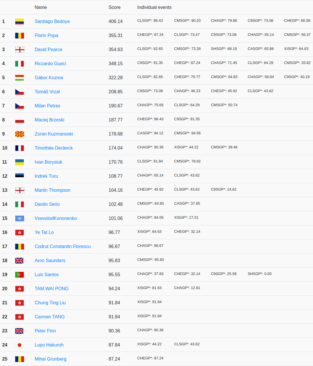 GP Live Standings