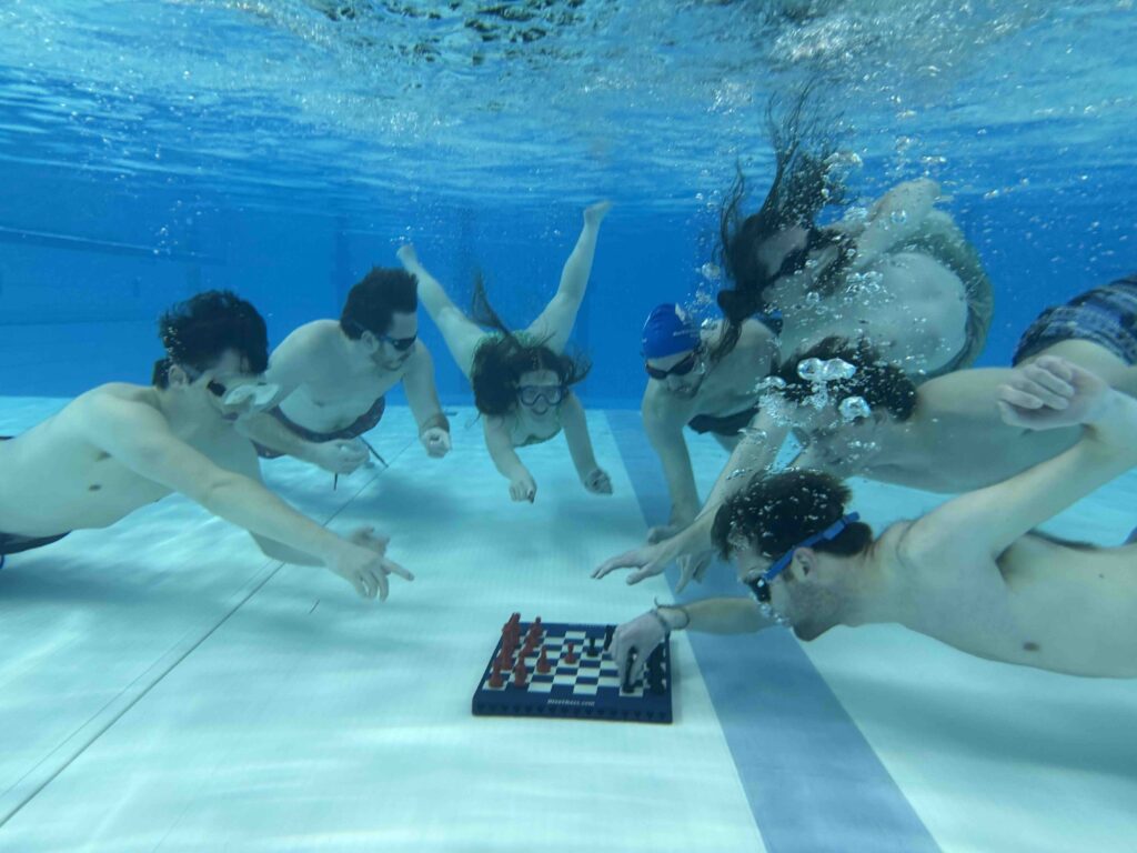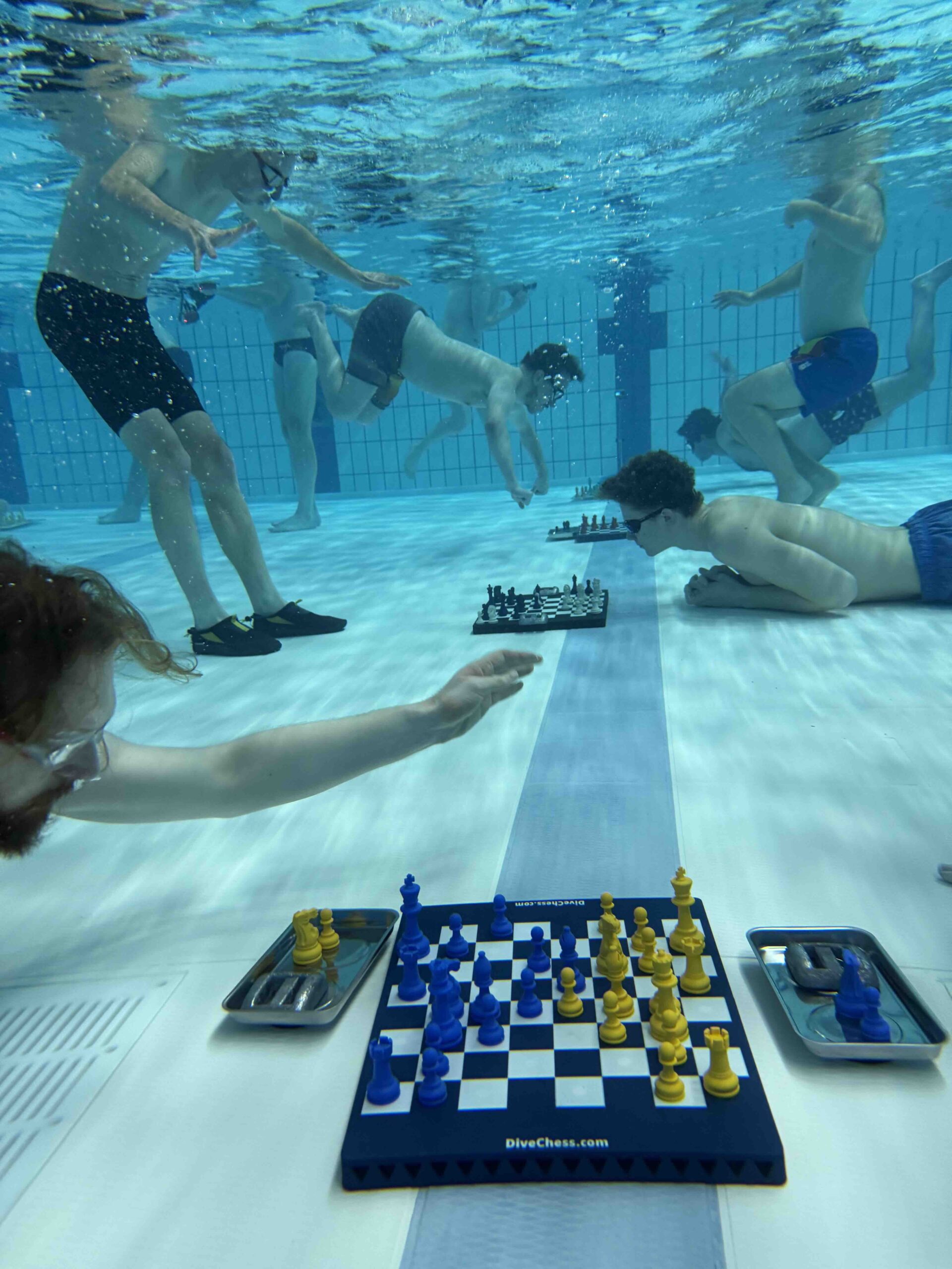 Diving Chess combines traditional chess with underwater breath-hold diving. Players take turns diving to a submerged magnetic chessboard to make a move before resurfacing, creating a unique contest where strategy, stamina, and nerve are inseparable.